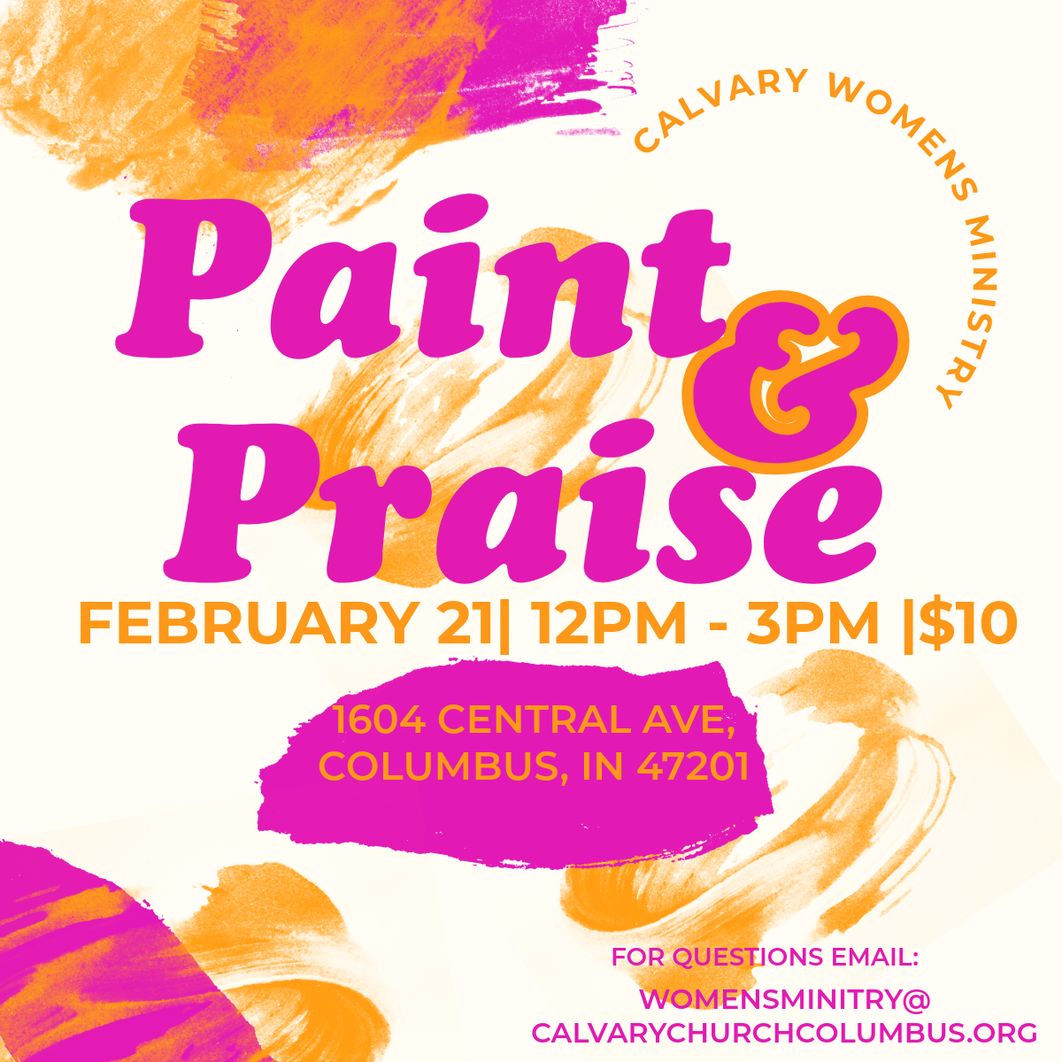 We invite you to connect, inspire, grow and fellowship with us. Register for Paint and Praise below. If you have any questions contact Kenee McNeal via email at womensministry@calvarychurchcolubus.org